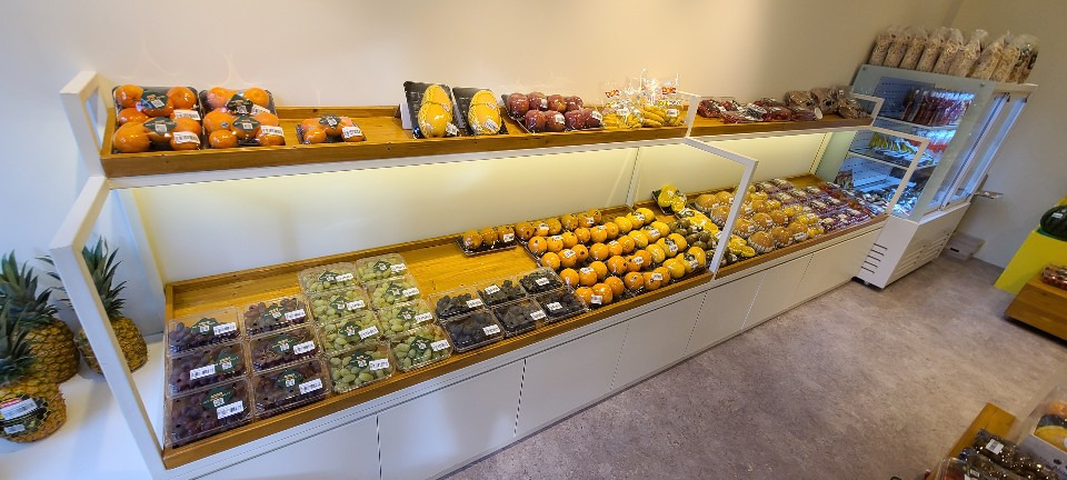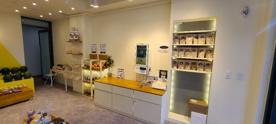 서울 목동 과일가게 인테리어 8평 시공현장 홍보영상 홈코디 분석 내용 무인상점으로 키오스크 설치 벽체는 도장 과일진열대는 각파이프로 뼈대을 제작후 삼나무 집성목으로 바구니 제작 진열대는 LED조명 바닥은 데코타일시공 외부는 갈바시공 창문은 유압쇼바을 달아서 두번 접히게 제작 가마찌도어 제작 빠른시공과 저렴한 가격 리뷰 0 포토 리뷰만 보기 목록